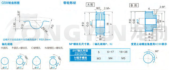 | 規格 | 形狀 | 節徑P.D | 外徑O.D | 擋邊外徑F | 擋邊內徑M | 輪轂直徑Dm | 內孔dH7 | |||||