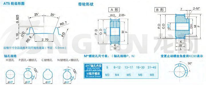 | 規格 | 形狀 | 節徑P.D | 外徑O.D | 擋邊外徑F | 擋邊內徑M | 輪轂直徑Dm | 內孔dH7 | |||||