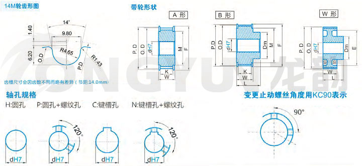 規格 形狀 節徑P.D 外徑O.D 擋邊外徑F 擋邊內徑M 透孔外徑E 輪轂直徑Dm 內孔dH7