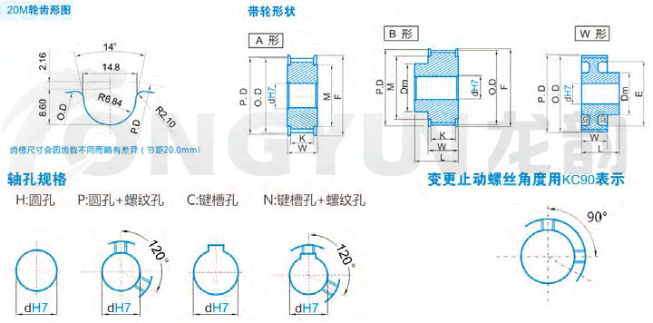 | 規格 | 形狀 | 節徑P.D | 外徑O.D | 擋邊外徑F | 擋邊內徑M | 透孔外徑E | 輪轂直徑Dm | 內孔dH7 | |||