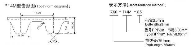 RPP14M橡膠單麵齒同步帶齒形圖: